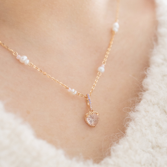 HEARTBEAT BUBBLE NECKLACE - ROSE QUARTZ
