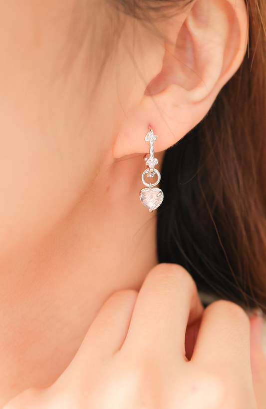 HEARTBEAT PINK ROSE SILVER EAR HOOP - ROSE QUARTZ