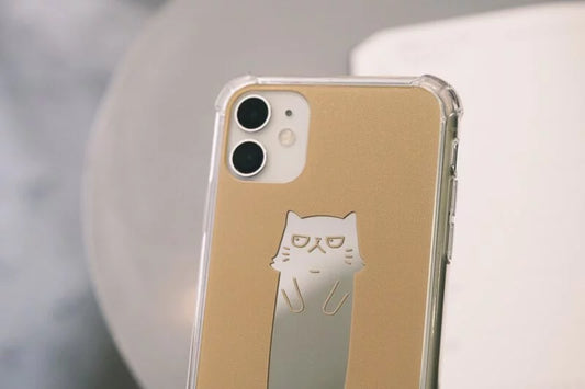 奶茶色 厭世貓鏡面四角防摔 Iphone Case