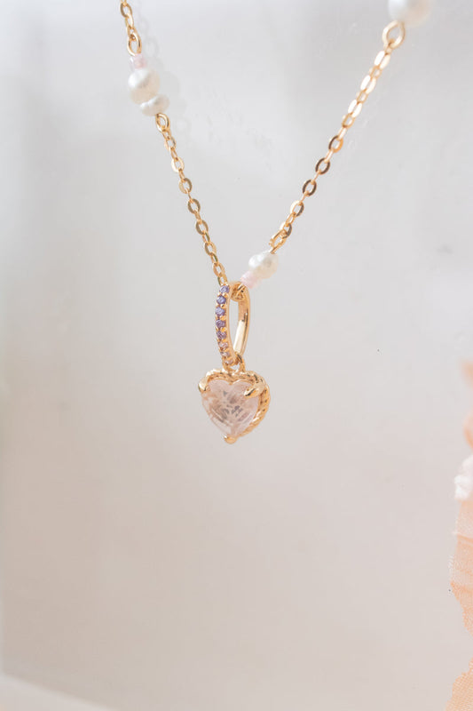 Heartbeat Bubble Rose Gold Necklace - Rose Quartz