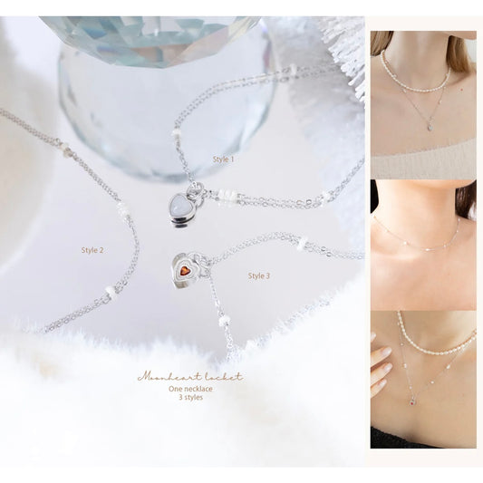Moonheart Locket Necklace Silver - 3 ways wearing