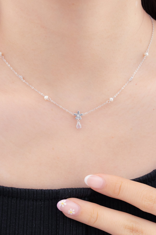 BUBBLE FLORA SILVER NECKLACE - MOONSTONE - TWO WAY - REMOVABLE CHARM
