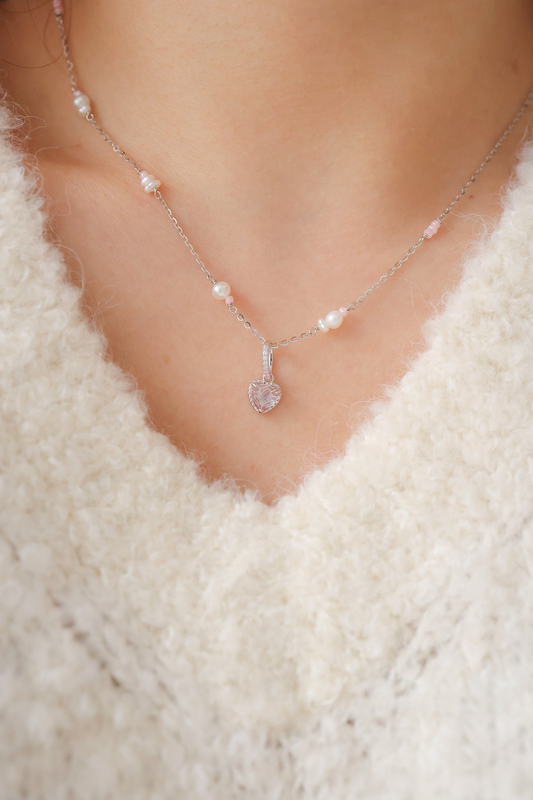 HEARTBEAT BUBBLE NECKLACE - ROSE QUARTZ