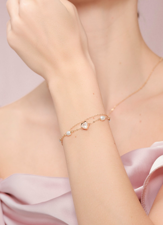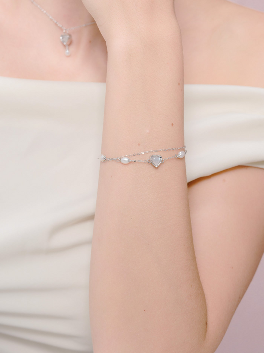 FROSTED LOVE LAYERING BRACELET - MOONSTONE