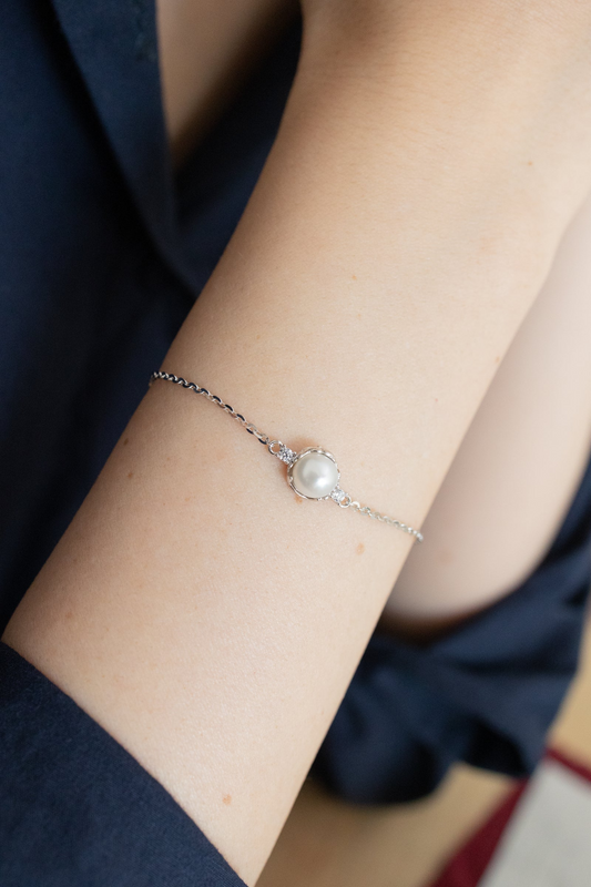 FROSTED LOVE LAYERING SILVER BRACELET - MOONSTONE