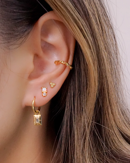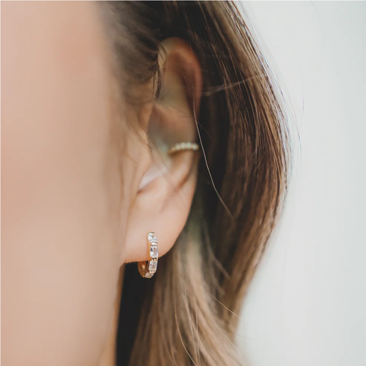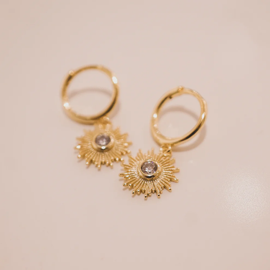 Moon and Starburst Paved CZ Huggies Hoop Earrings - Gold
