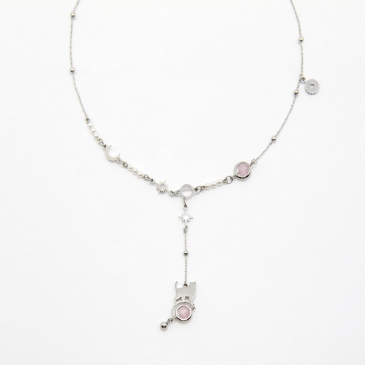 B139-S LunaWhisker 日月星辰粉紅色貓眼石Y字項鍊