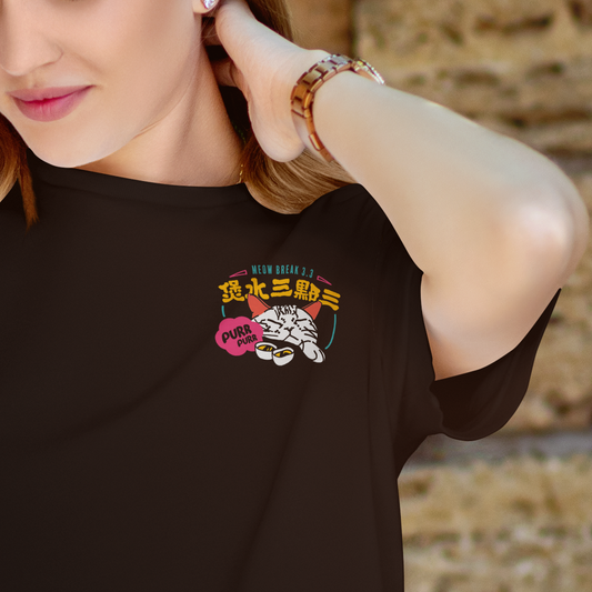 煲水即MEOW BREAK 3點3貓奴T恤 黑