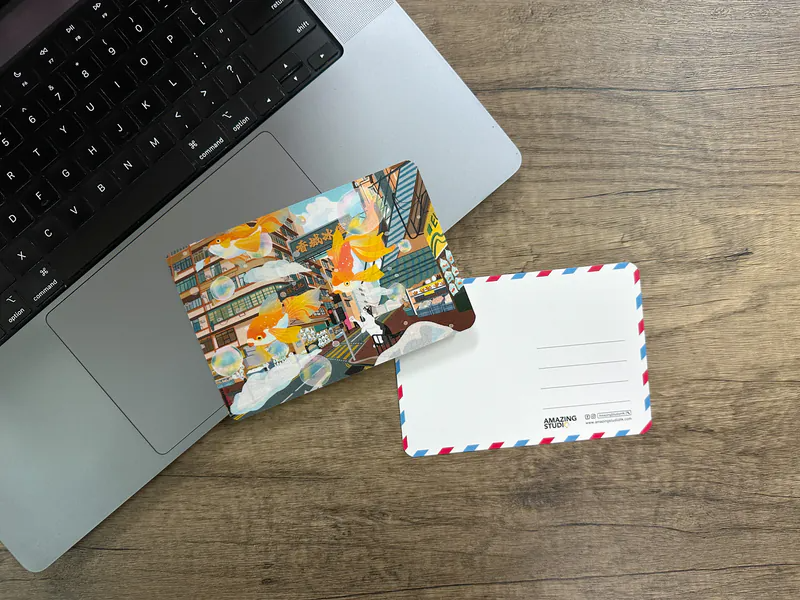 明信片【 貓遊街角 - 魚樂無窮 】