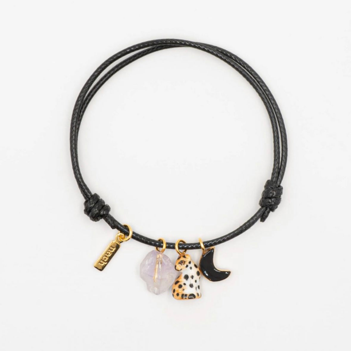 D204 Leopard, moon & amethyst charm's bracelet