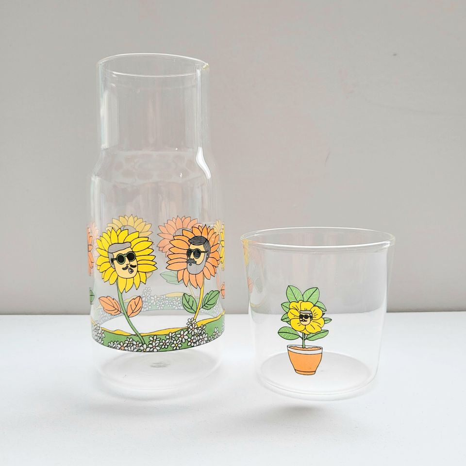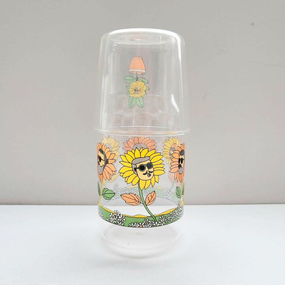 這款玻璃杯套裝包含一個蓋子和一個玻璃杯,色彩鮮豔,展現獨特的愛花家庭插畫。無論是日常使用還是特別場合,都是完美的選擇。