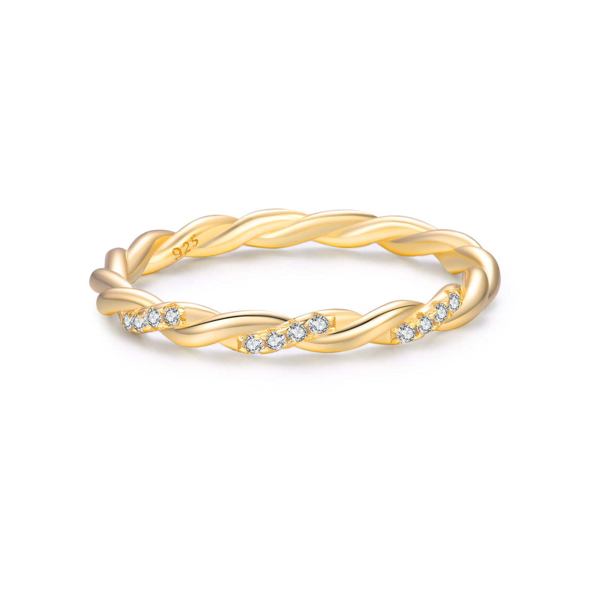 This precious Twist Ring-Gold is crafted from the finest silver with its gentle twists and curves creating a beautiful piece of jewelry. Perfect for sophisticated occasions, this ring radiates elegance and refinement with its exquisite design. Effortlessly elevate any ensemble with this graceful accessory.
